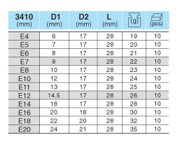產品名稱.Product Item:星形 E 套筒.E-STAR SOCKETS 產品型號.Model Number:NO:3410 *規格.SIZE in mm:E4~E20mm