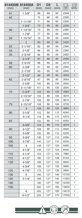 產品型號.Model Number:NO:814400A *規格.SIZE in inch:1-5/8"~6-1/2"