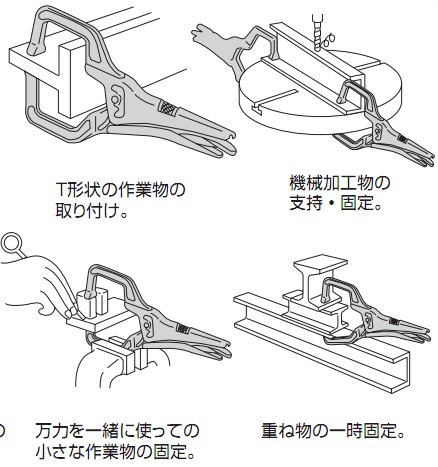 .開口可根據工件進行4檔切換,實現快速作業. .切換支點,用滾花螺母調節工件的夾持狀況,只需握緊手柄,即可牢牢固定.